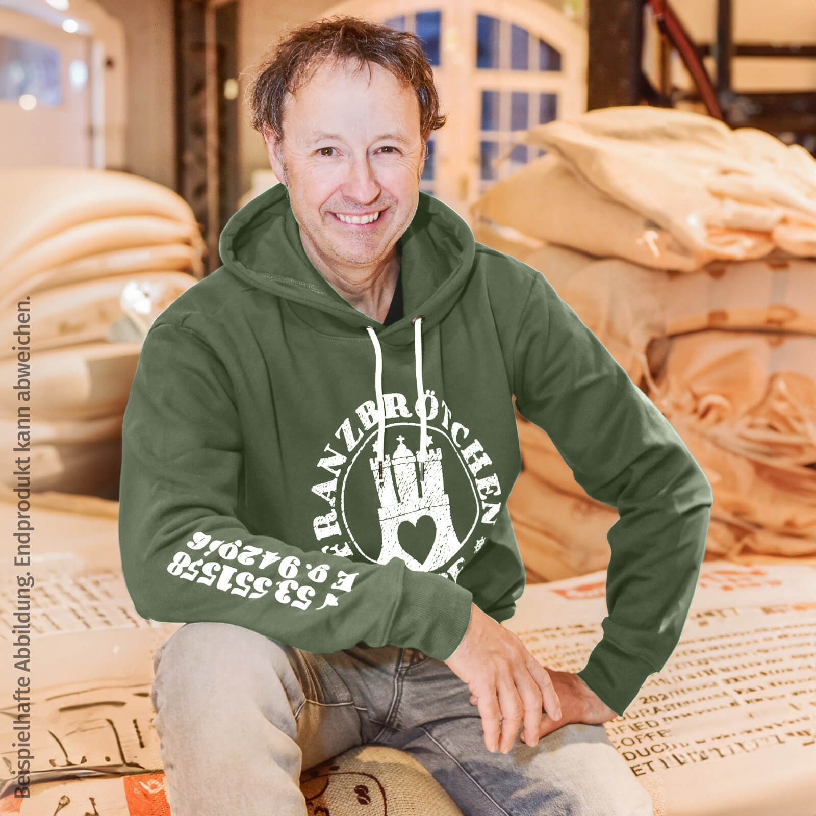 Franzbrötchenliebe Hoodie unisex - Oil Green mit weißem Print
