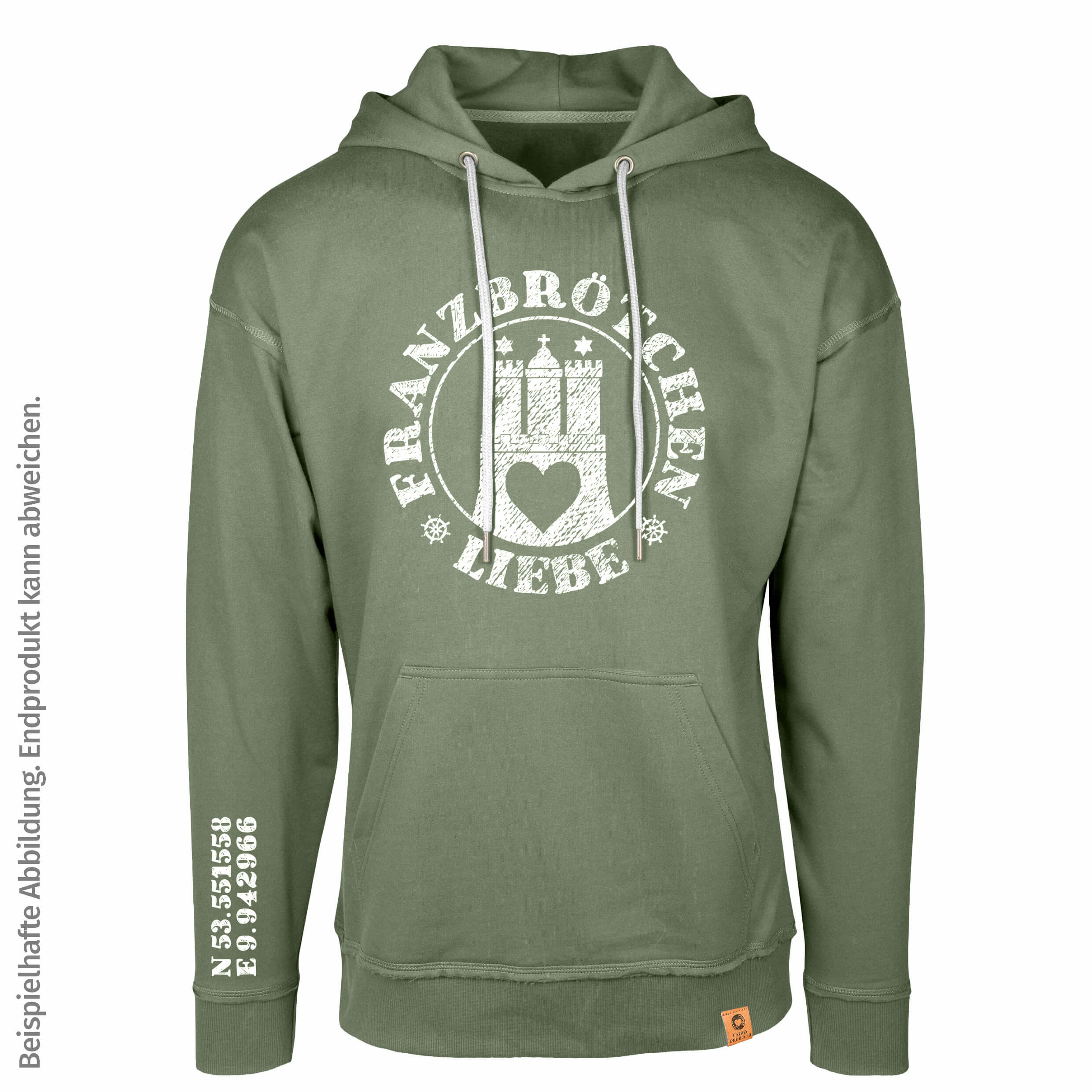 Franzbrötchenliebe Hoodie unisex - Oil Green mit weißem Print