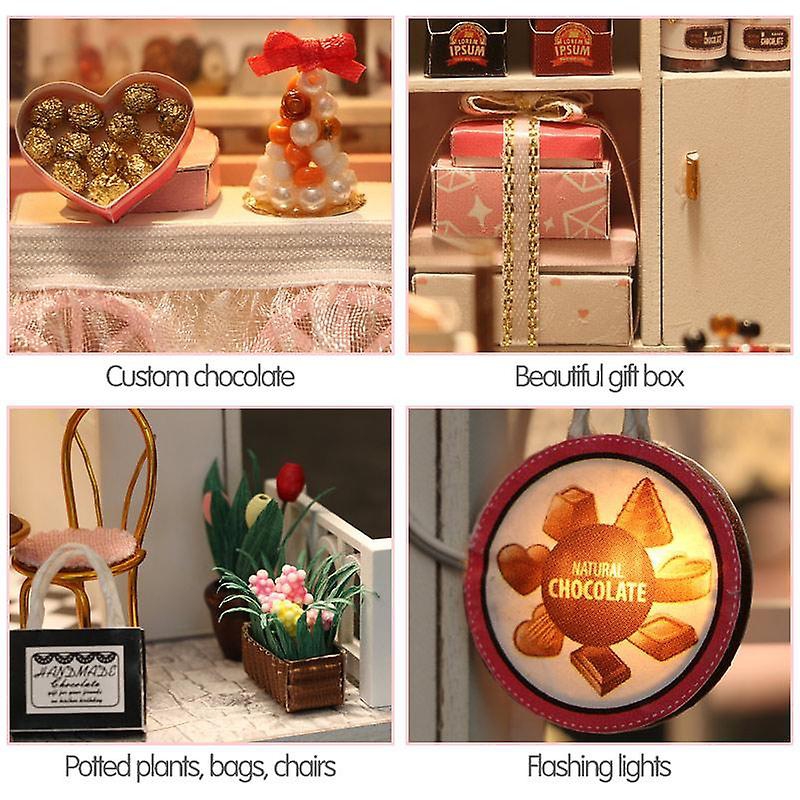 Holzhaus LED "Chocolate Shop" Holzbausatz C007 DIY Puppenhaus